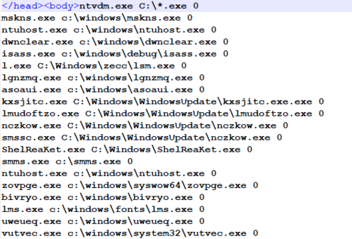 這些被結(jié)束的進(jìn)程,刪除的文件,都是已知的一些病毒常用的名稱。作者這樣做的目的是為了更加便利的控制受害者的計(jì)算機(jī),防止被另外病毒干擾。而且也可以防止另外病毒引起的計(jì)算機(jī)異常時(shí),受害者排查的時(shí)候發(fā)現(xiàn)本身。