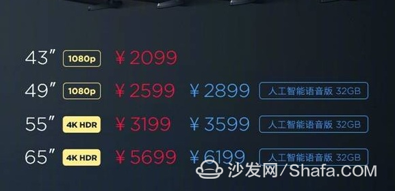 小米電視4A 43、49、55、 65 英寸尺度版售價(jià)別離為 2099 元、 2599 元、 3199 元、 5699 元;49、55、 65 人工智能語音版售價(jià)別離為 2899 元、 3599 元、 6199 元。
