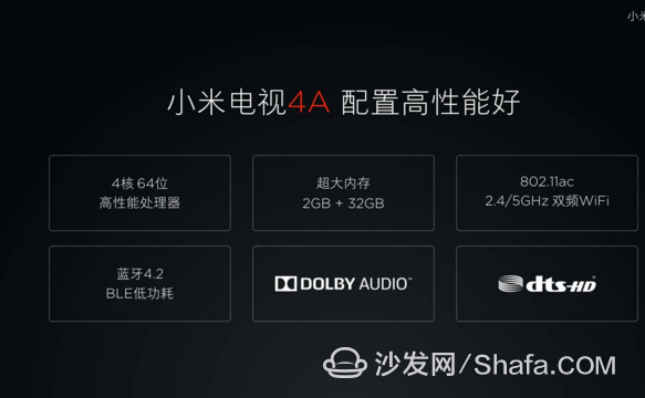 小米電視4A系列各尺寸統(tǒng)一采用了晶晨AmlogicT962CortexA53 處理器( 4 核高性能CPU,主頻高達(dá)1.5GHz),和Mali-450MP5750MHz的GPU( 5 核高性能GPU)、2GBDDR4 高速內(nèi)存,同時(shí)標(biāo)配8GeMMC5. 1 高速閃存,還可選配32G超大閃存版本。