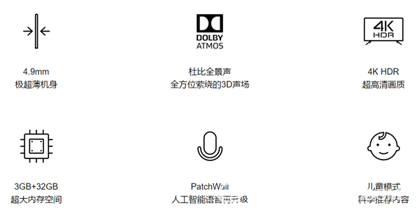 小米電視 4 是小米目前最輕薄的電視,厚度僅為4.9mm,比iPhone7 還要薄29%,屏幕采用無邊框設(shè)計(jì),像是一整塊玻璃,背部采用高階曲面造型,美到令人窒息。