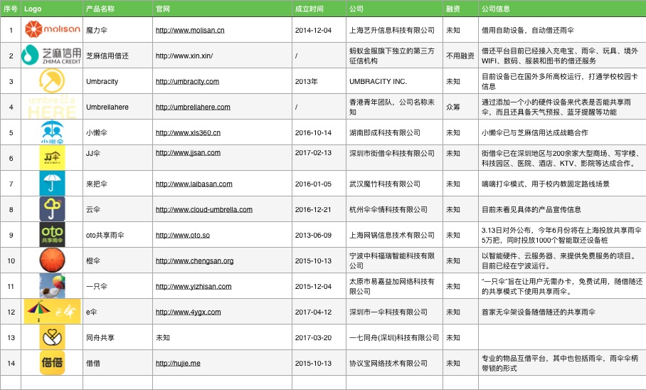 共享雨傘現(xiàn)狀:玩家十余個(gè),僅三家獲融資