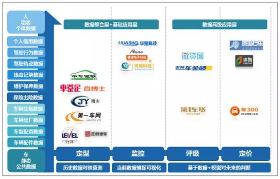 顯然,數(shù)據(jù)驅(qū)動的風(fēng)控辦事成為了汽車金融產(chǎn)品的剛需。于是,互聯(lián)網(wǎng)汽車事業(yè)部決定梳理一下提供正在提供這些剛需的數(shù)據(jù)辦事商,更重要的是,分析他們上游的數(shù)據(jù)源頭以及潛在的創(chuàng)業(yè)機(jī)會。