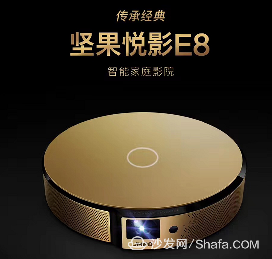正式表態(tài)的新品堅(jiān)果悅影E8, 模造玻璃鏡頭,亮度提升66%、投射比提升19%,HIFI級(jí)別音箱,悅耳動(dòng)聽,隱藏式散熱,散熱效果更佳,采用全新jmGO OS系統(tǒng),操作界面煥然一新。