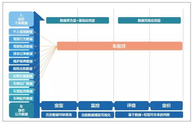 從縱向所需要的數(shù)據(jù)源看,完整嚴謹?shù)能嚨仲J交易需要在貸前查詢車型配置數(shù)據(jù),車輛出廠數(shù)據(jù),車輛交易數(shù)據(jù),保險出險數(shù)據(jù),維護調(diào)養(yǎng)數(shù)據(jù),違章數(shù)據(jù),個人信用數(shù)據(jù),在貸中持續(xù)監(jiān)控駕駛軌跡數(shù)據(jù)以及出險,維護調(diào)養(yǎng),違章等數(shù)據(jù)。