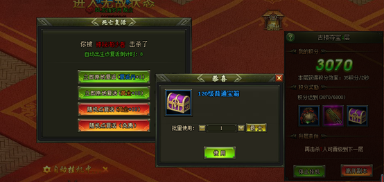 傲天盜墓條記古樓奪寶的過程中,還有其他的一些獎(jiǎng)勵(lì),好比積分累計(jì)到必然程度就可以收獲禮物和開啟寶箱。差別積分開啟的寶箱的價(jià)值完全差別,小編拿到了 3 次獎(jiǎng)勵(lì)的機(jī)會(huì)。眼看最后一次 6000 積分的獎(jiǎng)勵(lì)甚是豐厚,奈何時(shí)間有限小編只能放棄了。
