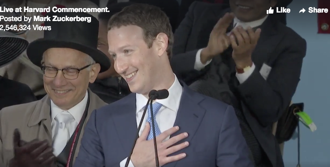 在今天細雨蒙蒙的哈佛廣場上,輟學生扎克伯格終于被授予了學位證書,像他 15 年前預測的那樣。