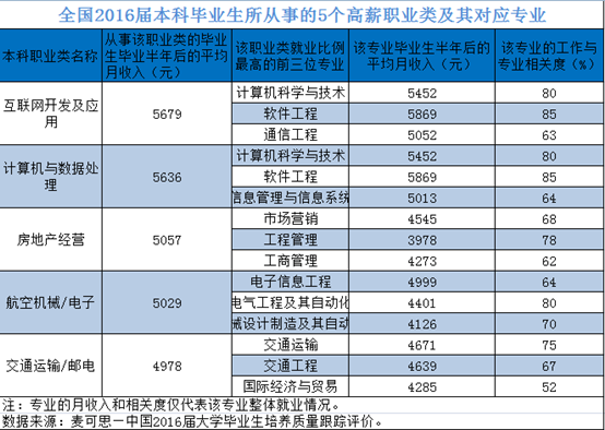 1、結(jié)業(yè)半年平均月薪最高專業(yè):計(jì)算機(jī)科學(xué)與技術(shù), 5452 元。