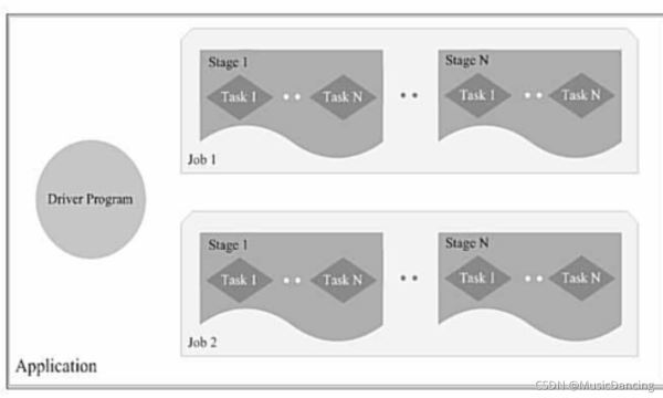 - 一個Application由一個Driver和若干個Job構(gòu)成