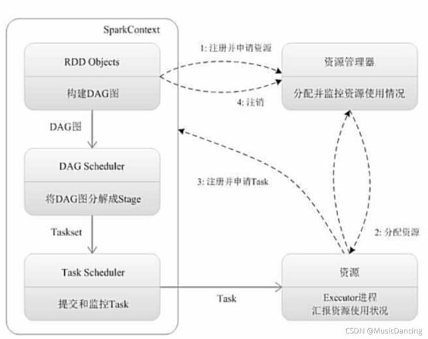 1. 為應(yīng)用構(gòu)建起基本的運(yùn)行環(huán)境,即由Driver創(chuàng)建一個SparkContext進(jìn)行資源的申請、任務(wù)的分配和監(jiān)控。