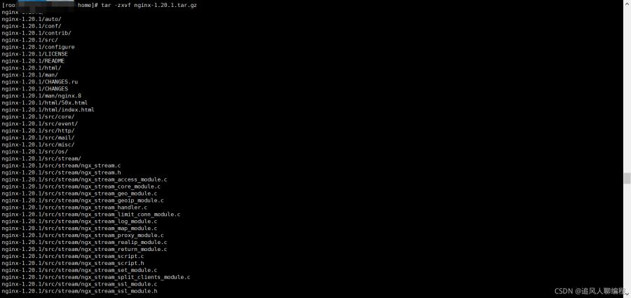 輸入 tar -zxvf nginx-1.20.1.tar.gz 命令,對(duì)安裝包進(jìn)行解壓縮