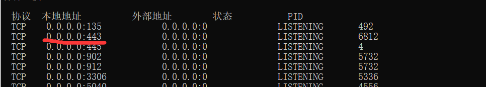 進(jìn)程編號(PID)為6812的進(jìn)程將443端口占用了