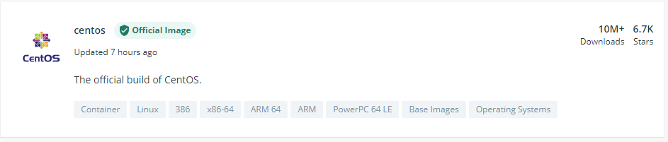 我們在dockerhub中搜索centos官方鏡像,看一下的官方dockerfile文件。