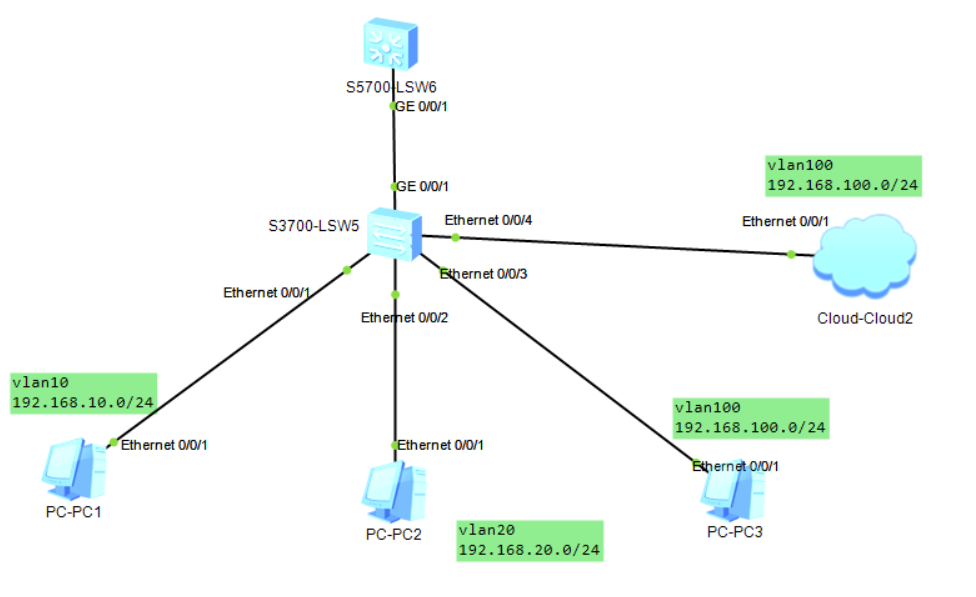 [L2-SW1-Ethernet0/0/4]port default vlan 100