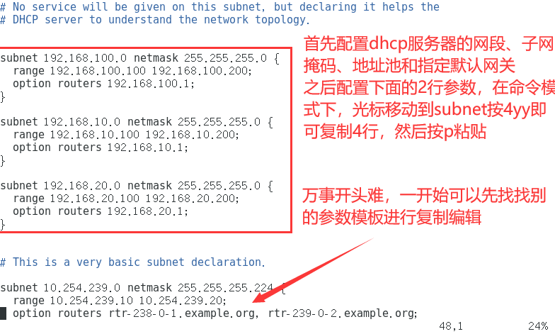 - [root@xjj dhcp]# vim dhcpd.conf
