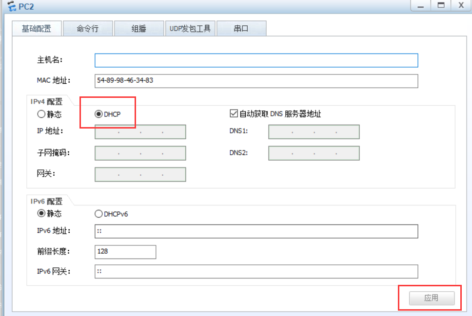 - 首先開啟兩臺PC的DHCP來自動獲取一下IP地址