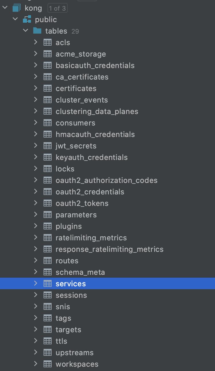 $ curl -X POST --url http://localhost:8001/services/ --data 'name=pkslow' --data 'url=https://www.pkslow.com'