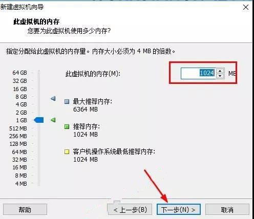 11.設(shè)置虛擬機(jī)的內(nèi)存大小,建議最少選擇512M。我這里選擇1024M,點擊下一步。