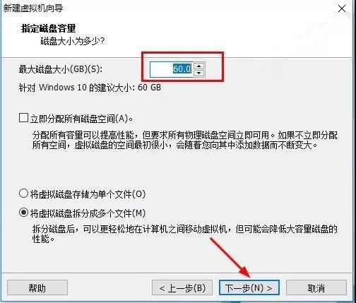 16.選擇磁盤容量大?。▁p系統(tǒng)建議設(shè)置10G以上。Win7及以上系統(tǒng)設(shè)置30G以上)點擊下一步。