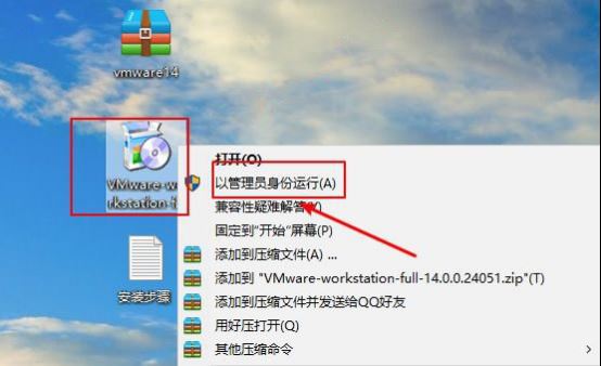 2.打開解壓之后的文件夾,鼠標(biāo)右擊“VMware-workstation-full-14.0.0.24051”,選擇以管理員的身份運(yùn)行。