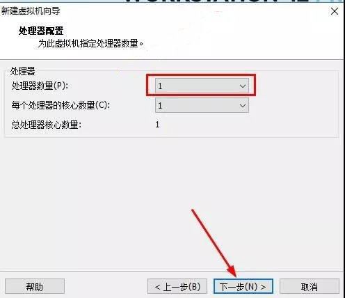 10.根據(jù)電腦配置,選擇處理器數(shù)量,我這里保持默認(rèn),點擊下一步。