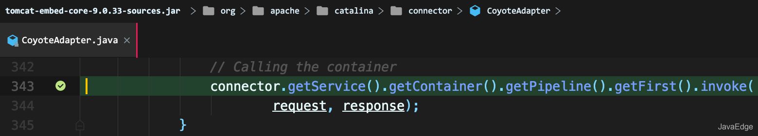 - 連接器中的Adapter會(huì)調(diào)用容器的Service方法執(zhí)行Servlet