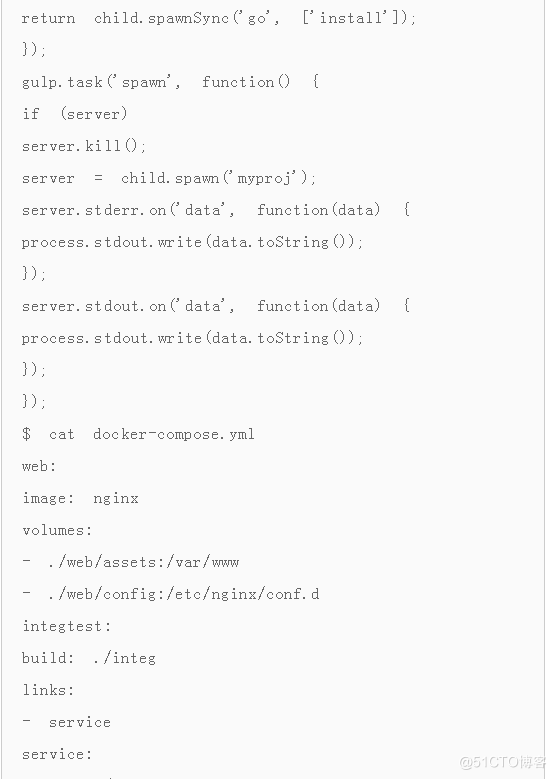 時,會啟動git clone,然后循環(huán)運行;不需要重建image或者重啟容器。每當(dāng).go文件發(fā)生變化,Gulp就會重建,并且在運行的容器中重啟我的服務(wù)。就這么簡單。