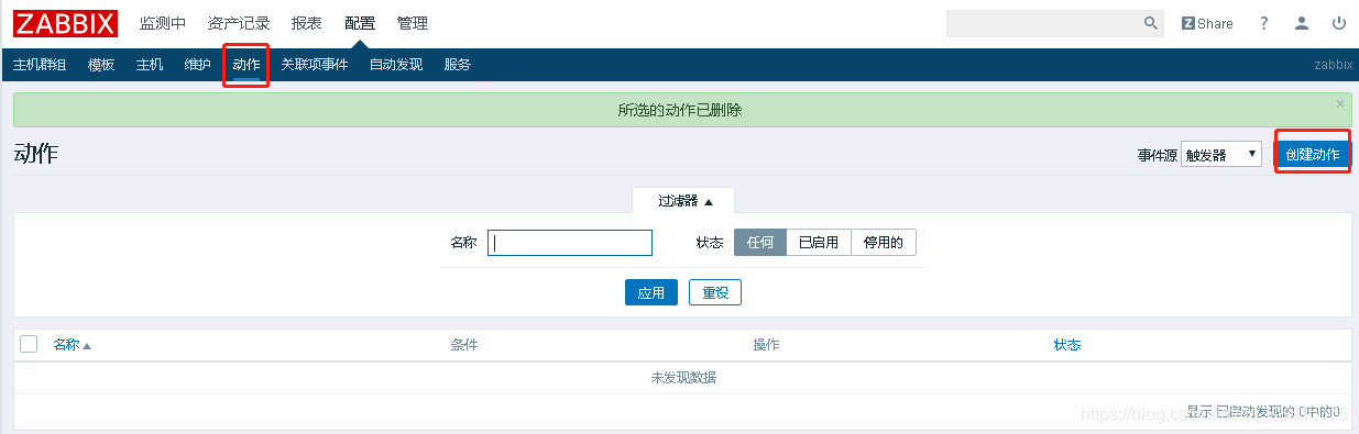 3、還有一個原因,如果你添加的動作是在觸發(fā)了報警之后的,那么也不會發(fā)郵件,所以在設置動作時所選定的觸發(fā)器最好是健康的,如果是為了測試,最好加完動作之后再改觸發(fā)器的閾值。