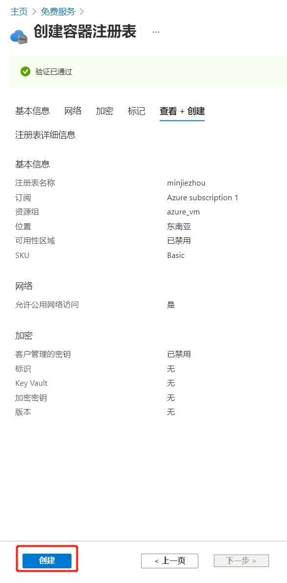 點擊“查看+創(chuàng)建”按鈕。