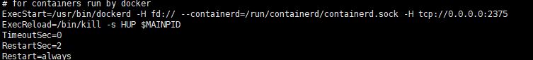 在 Execstart最后配置tcp協(xié)議 -H tcp://0.0.0.0:2375