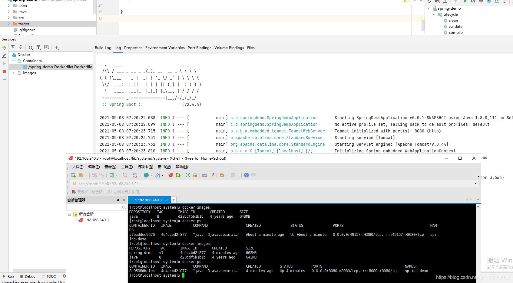 5、自此docker 已經(jīng)安裝完畢,這里通過一個手動將一個web項目部署到鏡像中的方法來測試docker 的狀態(tài),若想了解idea如何發(fā)布項目到docker 可以跳過這一步