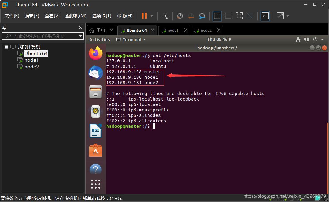 3臺虛擬機中都需要在 hosts 文件中加入對方的ip地址