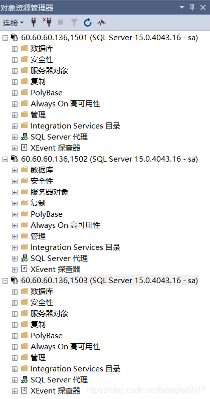 至此容器已經(jīng)啟動完成,下面通過SSMS連接數(shù)據(jù)庫進行相關檢查和配置ALWAYSON。