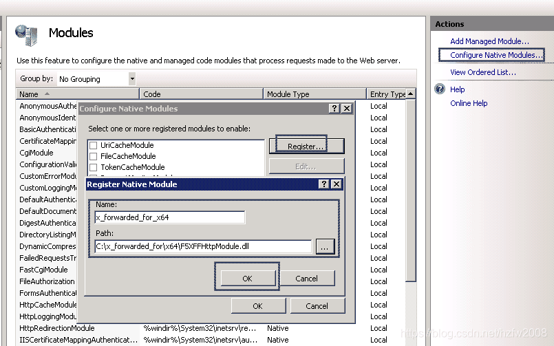 單擊配置本機(jī)模塊,然后在彈出的對(duì)話框中,單擊注冊(cè)。
