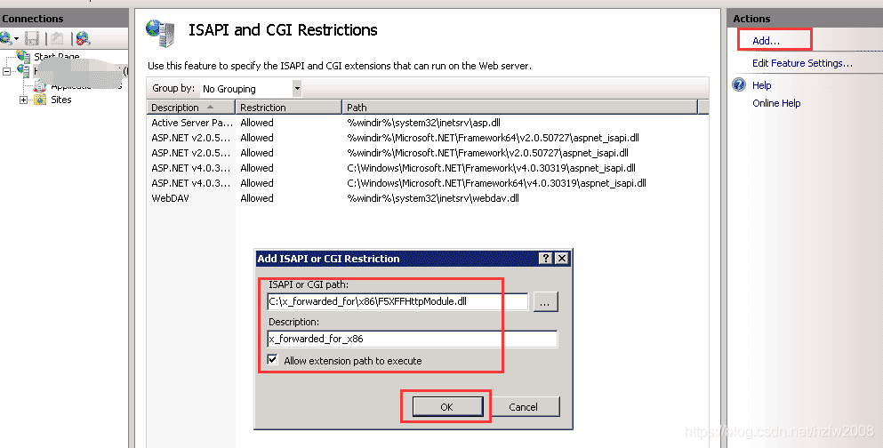為添加的兩個(gè)文件授權(quán)允許運(yùn)行ISAPI和CGI擴(kuò)展。