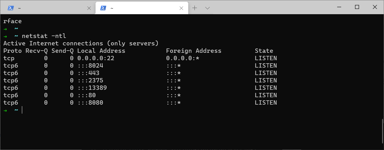 另外可以查看通過(guò)開(kāi)放端口,來(lái)驗(yàn)證開(kāi)啟是否成功,命令如下所示