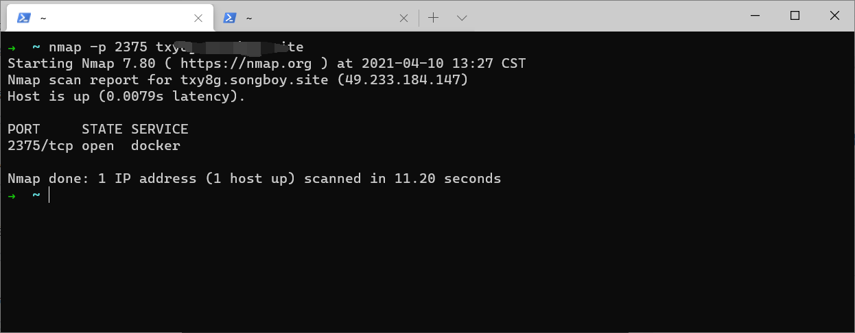 nmap -p 2375 xxx.xxx.xxx.xxx