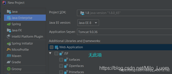 在舊版本中,IDEA創(chuàng)建項(xiàng)目中直接有一個(gè)JAVA Enterprice,但是最新版中沒(méi)有這個(gè)選項(xiàng)。