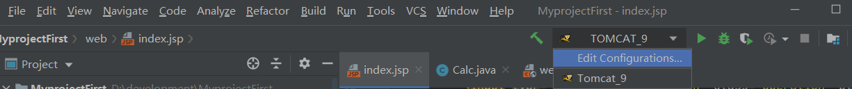 1、創(chuàng)建好Tomcat后,就可以通過(guò)工具欄快速打開(kāi)tomcat的配置頁(yè)面