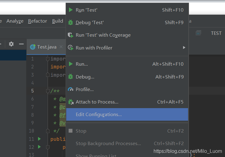 7、然后我們正式開(kāi)始配置tomcat容器。首先打開(kāi)菜單Run -> Edit Configurations…