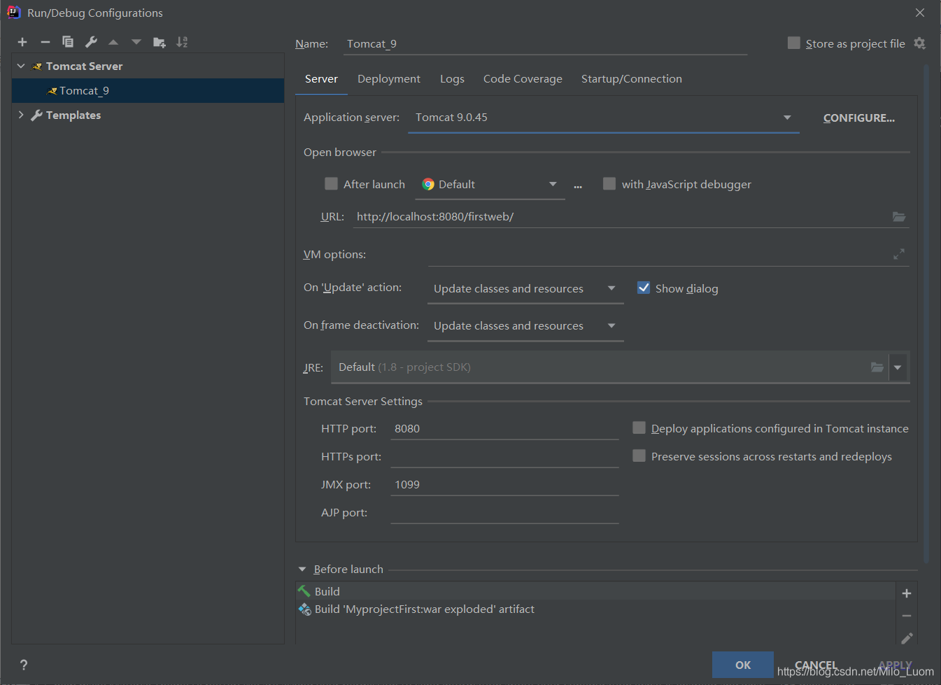 注:這兩個(gè)選項(xiàng)需要tomcat成功配置了項(xiàng)目后才有