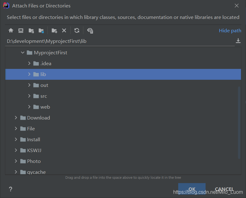 4、在打開(kāi)的窗口中把路徑選擇到剛剛創(chuàng)建的lib文件夾,然后點(diǎn)擊OK