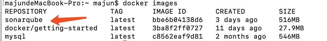 下載完成后 執(zhí)行docker images 查看已經(jīng)下載的鏡像文件。已經(jīng)有了sonarqube。