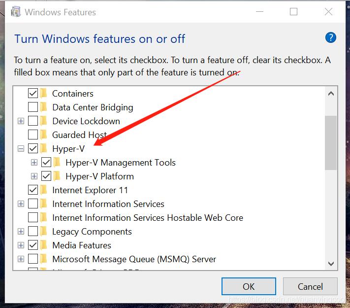 通過切換windows features選項(xiàng)開啟或者關(guān)閉Hyper - H選項(xiàng),選中狀態(tài)下可啟動(dòng)docker應(yīng)用