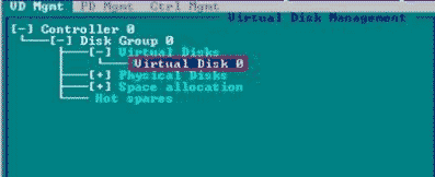 4) 確認點擊OK后,返回VD Mgnt界面,即可看到RAID10的獨立熱備盤設置完畢,如圖3-8所示:
