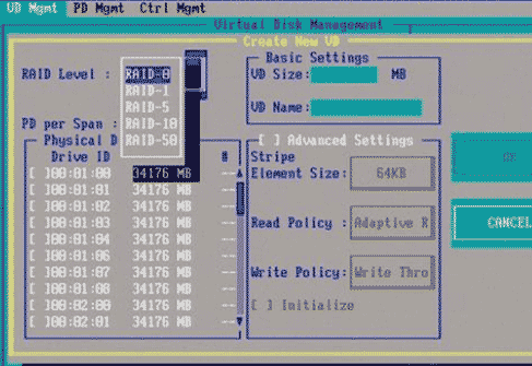 2. 等待一小會兒,系統(tǒng)自動進入虛擬磁盤管理器(Virtual Disk Management),準備開始配置RAID,如圖2-2所示: