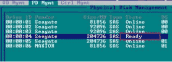1) 按Ctrl+N切換到PD Mgnt界面,可以看到硬盤的狀態(tài),如圖3-2所示: