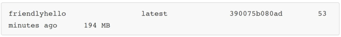為舉例需要,我參考 Docker 官方文檔創(chuàng)建了一個名為 friendlyhello 的 Docker 鏡像,該鏡像大小為 194MB(如下所示):