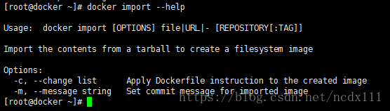 docker import [options] file|URL|- [REPOSITORY[:TAG]]