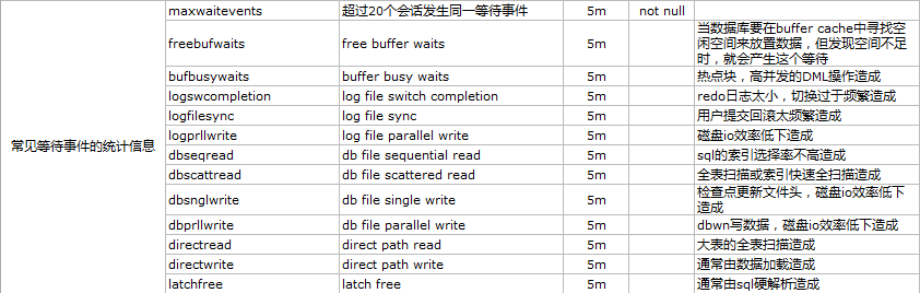 監(jiān)控項包括常見的等待事件發(fā)生的次數(shù),命中率、硬解析比例等。