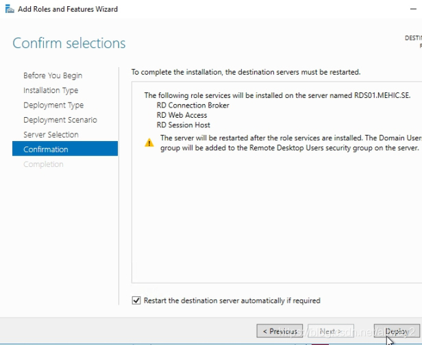 在“ 確認”頁面上,選中需要時自動重新啟動目標服務(wù)器的框 ,然后單擊“ 部署”。
